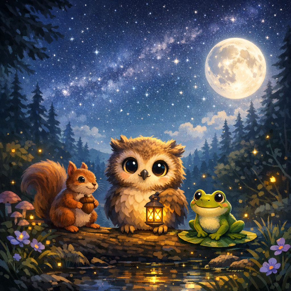 Join Ollie, the little owl, as he learns to say goodnight to all his forest friends. A calming bedtime journey awaits.