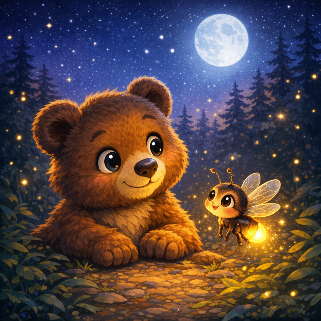 Once upon a time, in a cozy, leafy forest, there lived a young bear named Benny. Benny loved to play all day long. But when the sun went down, Benny felt a little lonely.