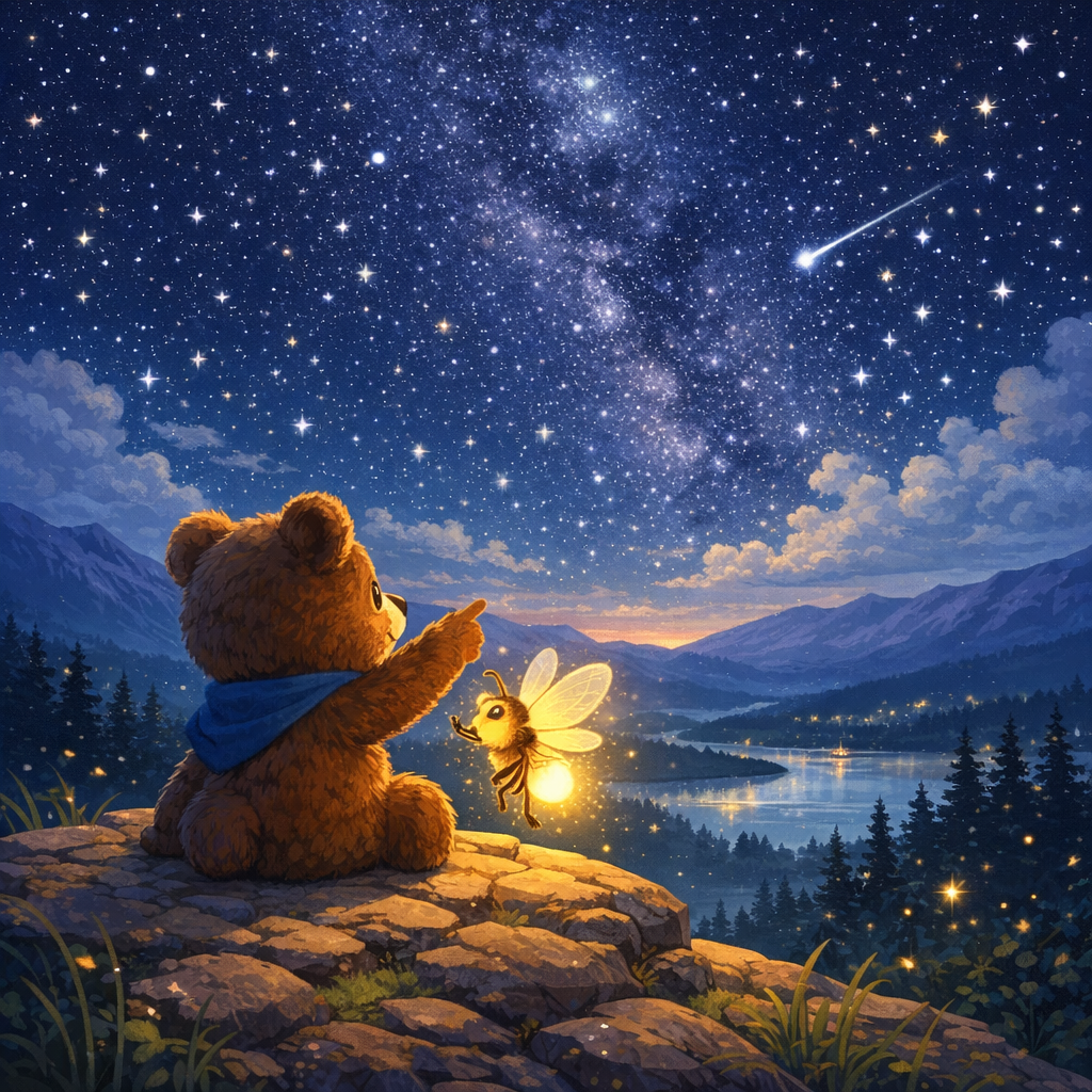 "When you see a star," Luna continued, "you can make a wish. Maybe it will come true!" Benny thought for a moment, eyes twinkling like the stars above.