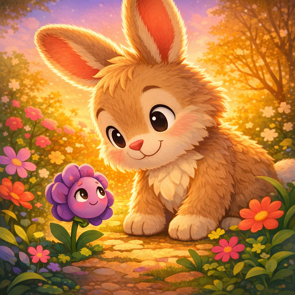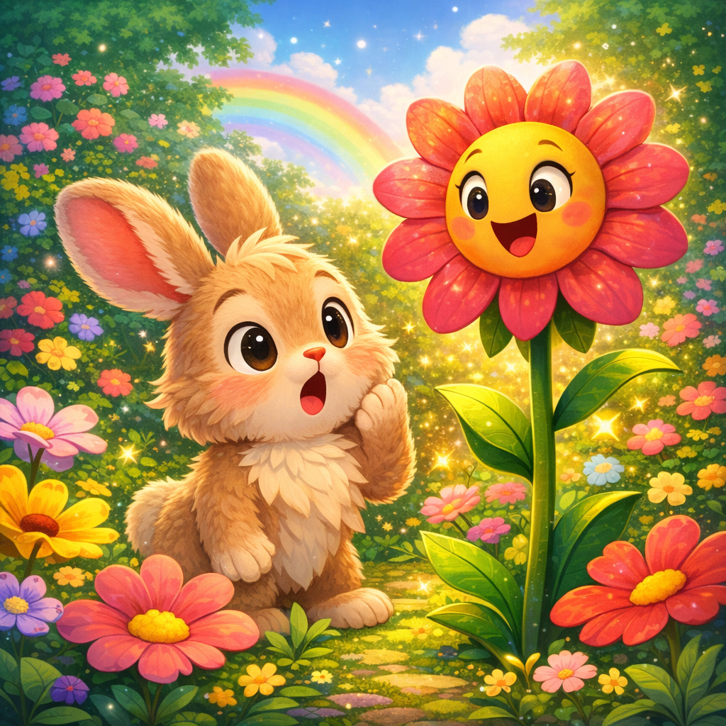 Benny sautillait d’une fleur à l’autre, chacune lui offrant un nouveau secret magique. Une fleur lui apprit à écouter les murmures du vent, tandis qu’une autre lui montra comment voir les couleurs d’un arc-en-ciel dans une seule goutte de rosée.