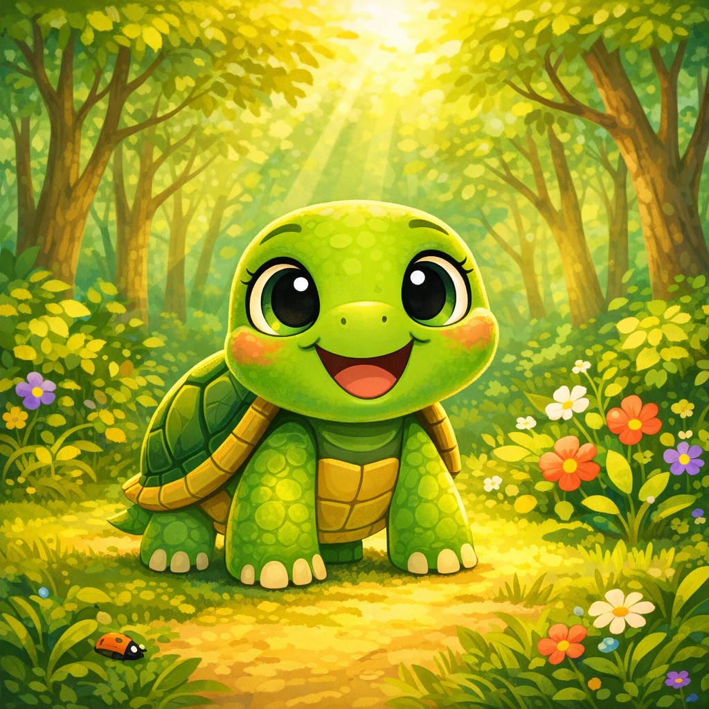 Tilly la Tortue s’est réveillée avec un grand sourire. Aujourd’hui était spécial. Aujourd’hui, c’était la Journée de la Terre !