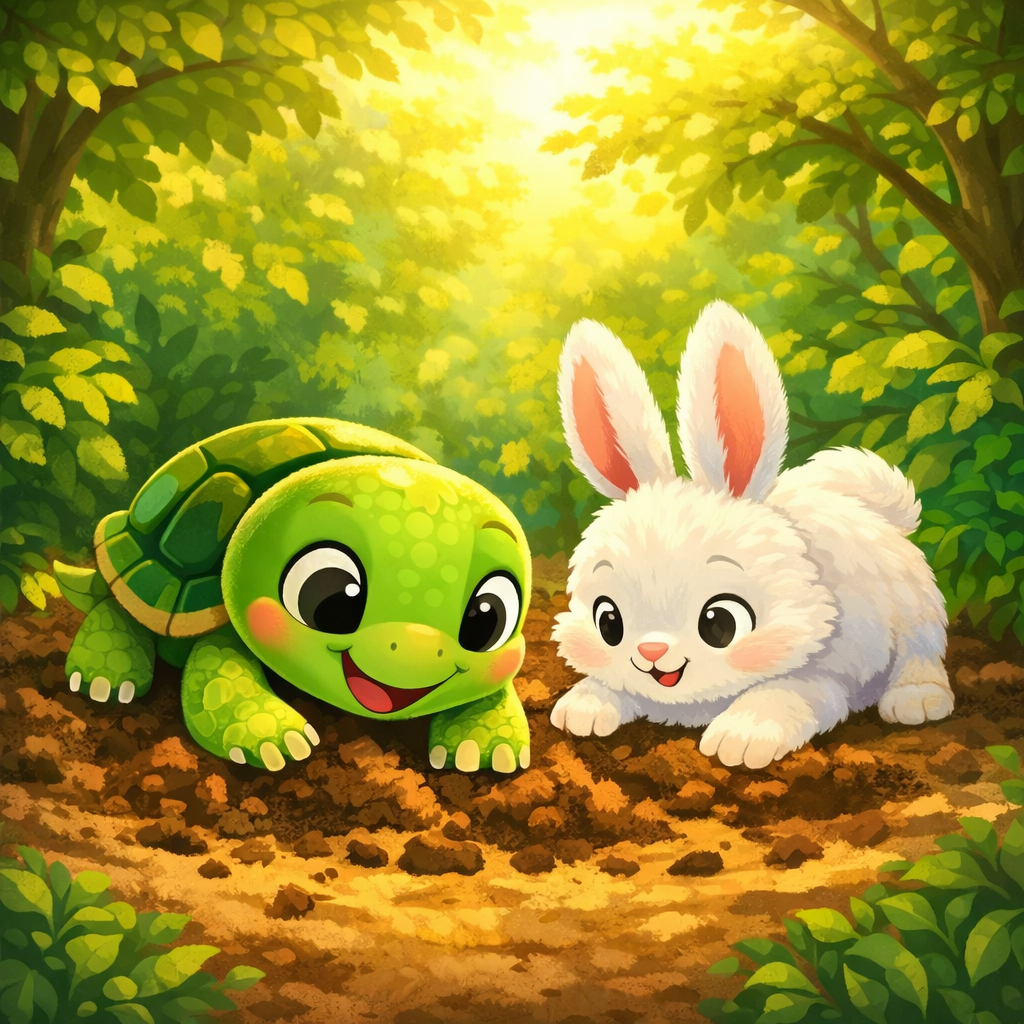 Avec son petit arbre, Tilly partit pour sa grande aventure. Elle sentait le soleil chaud sur sa carapace et la terre fraîche sous ses pieds. Tilly était prête !