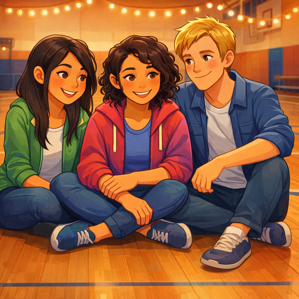 Alors que l’événement touchait à sa fin, Maya rassembla ses amis dans un coin tranquille du gymnase. Épuisés mais ravis, ils partagèrent leurs réflexions sur le succès de la journée.