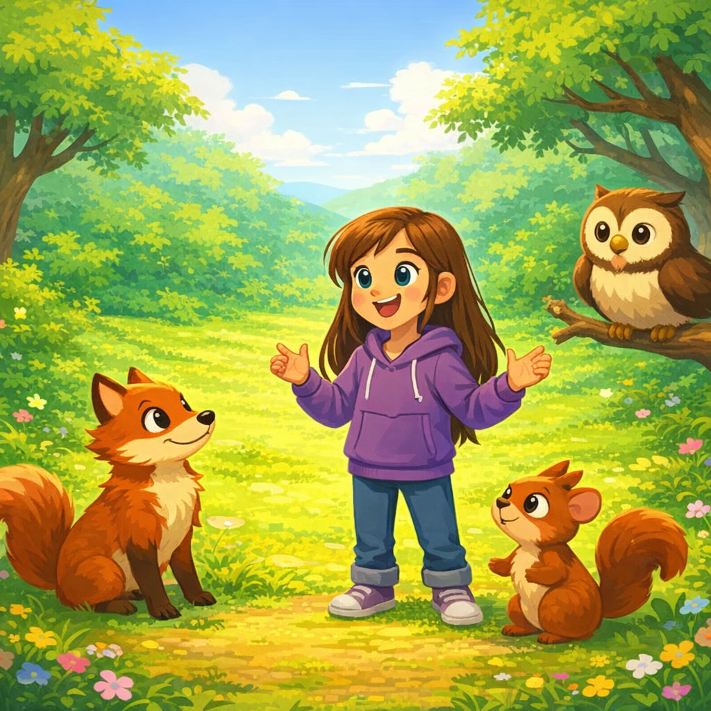 ‘Greetings, young Lila,’ the squirrel said in a surprisingly deep voice. ‘I am Reginald, the guardian of these woods. And you, my dear, have been chosen to help us.’ Lila blinked, unable to believe her eyes or ears.
