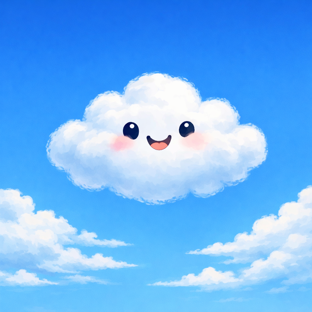 High above a bright blue morning, a very small cloud wiggled in the sky. It puffed into a fluffy sheep, then stretched into a long dragon, then squished itself into a crooked heart. The little cloud sighed a soft, misty sigh.