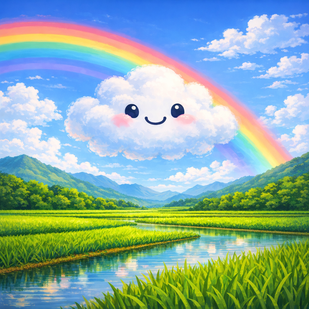 Aiko nodded. “Yes! The sun, the raindrops, and the clouds all cooperate to make a rainbow. It only happens when the sun comes out while raindrops are still in the air. It’s a special moment of teamwork.”