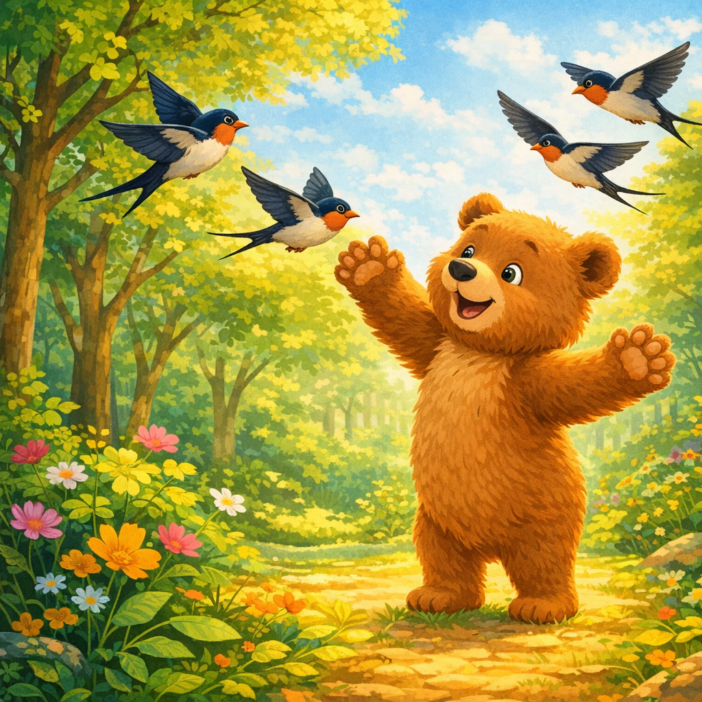 A gentle wind whooshed past and giggled. “You’re Nimbus, the little cloud who loves to wiggle! Why look so droopy?” The wind curled around Nimbus like a hug, making the cloud spin in a slow, silly loop.