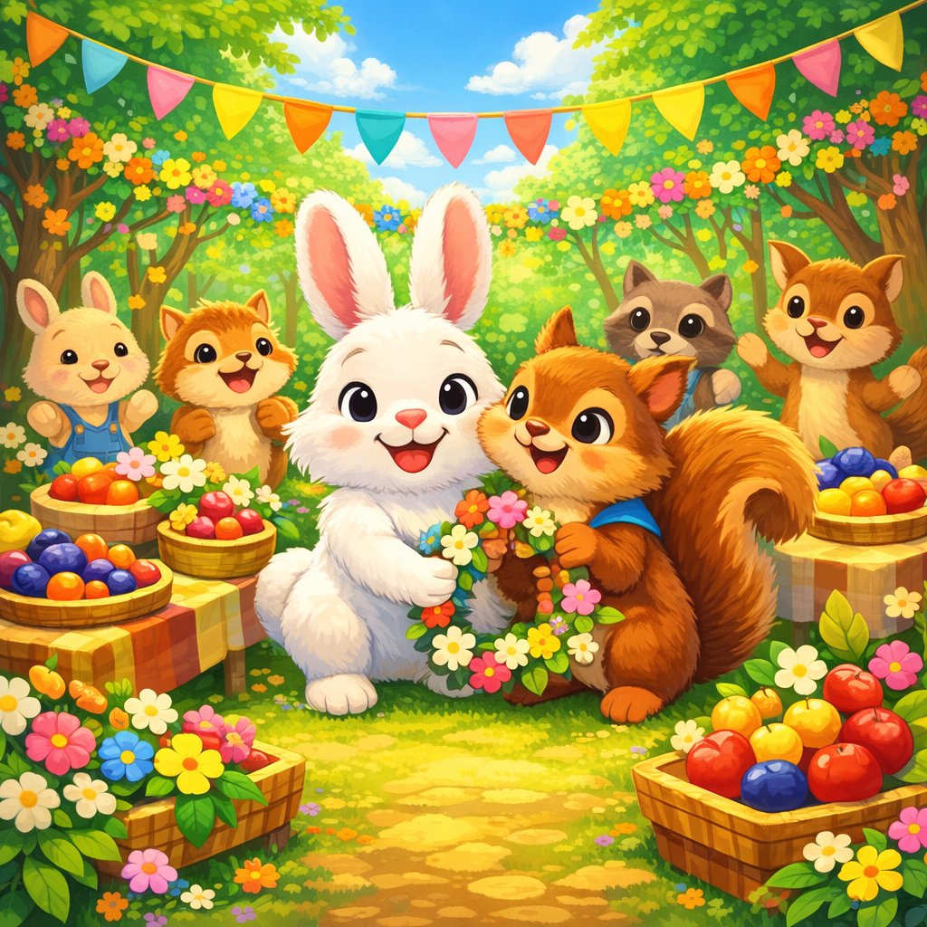 Finally, the day of the festival arrived. Animals from all over the forest gathered to celebrate. There were delicious treats made from fresh berries and nuts, and the air was filled with laughter and music.