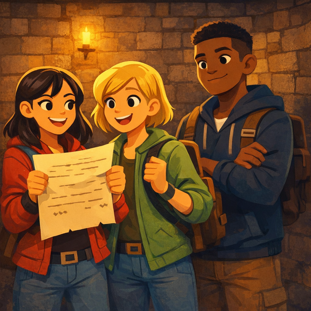 As they pondered, the room seemed to breathe with them, its secrets whispering just out of reach. The thrill of the unknown pulled them deeper into the mystery, each of them feeling the weight and wonder of history in their hands.