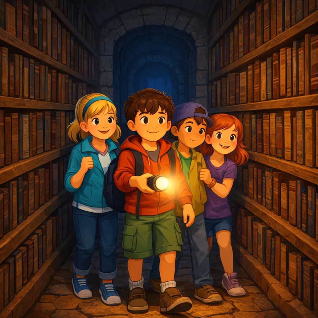 Jordan shrugged his shoulders, clearly intrigued. ‘Well, there’s only one way to find out. Let’s see where it takes us.’ With that, the four friends agreed to follow the map, embarking on an unexpected adventure through the library’s mysterious depths.