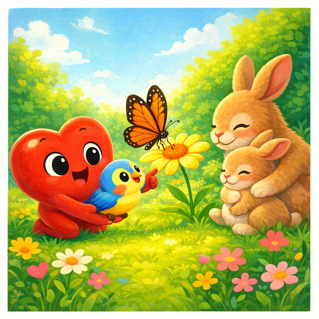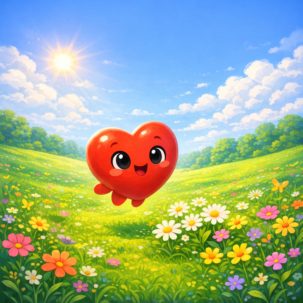 Once upon a time, in a sunny meadow, there lived a Little Heart. The Little Heart loved to dance in the gentle breeze. All day long, it wiggled and giggled with joy.
