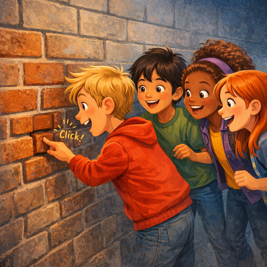 Alex, who had always been the most adventurous, reached out and pressed the brick. To their astonishment, a soft click sounded, and a small compartment popped open. Inside was a rolled-up piece of parchment tied with a red ribbon.