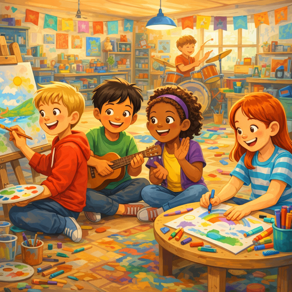 The friends watched with pride as their classmates began to fill the room with new art, music, and ideas. They had succeeded in honoring the past while creating something valuable for the present and future.