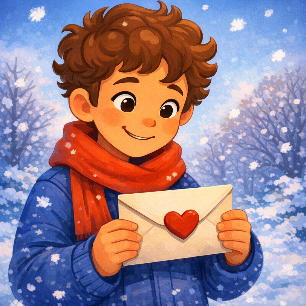 On a chilly February afternoon, Alex, Mia, and Jake were trudging home from school when Alex noticed something peculiar in the snow—a crisp, white envelope sealed with a heart-shaped sticker. Curiosity piqued, he picked it up and waved it at his friends.