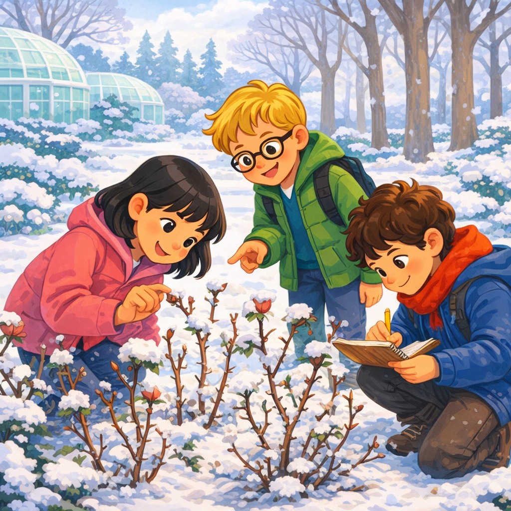 The botanical garden was a serene oasis, even in winter. Bare branches stretched towards the sky, creating a beautiful latticework above their heads. The trio trudged through the snow-covered paths until they reached the heart of the garden—a circle of rose bushes.