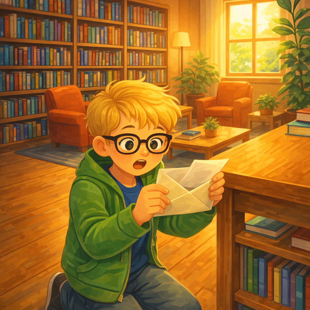 It was Jake who found it, tucked inside a book titled "Mysteries and Wonders." The envelope was wedged between the pages, its presence almost invisible among the stories.